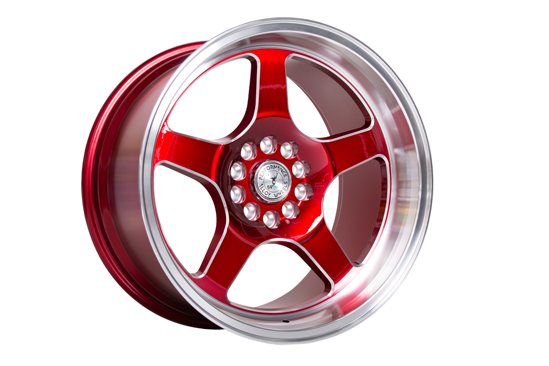 Bultmönster: 5x114,3 & 5x120Et 209,5x18"Candyred/champer/polished